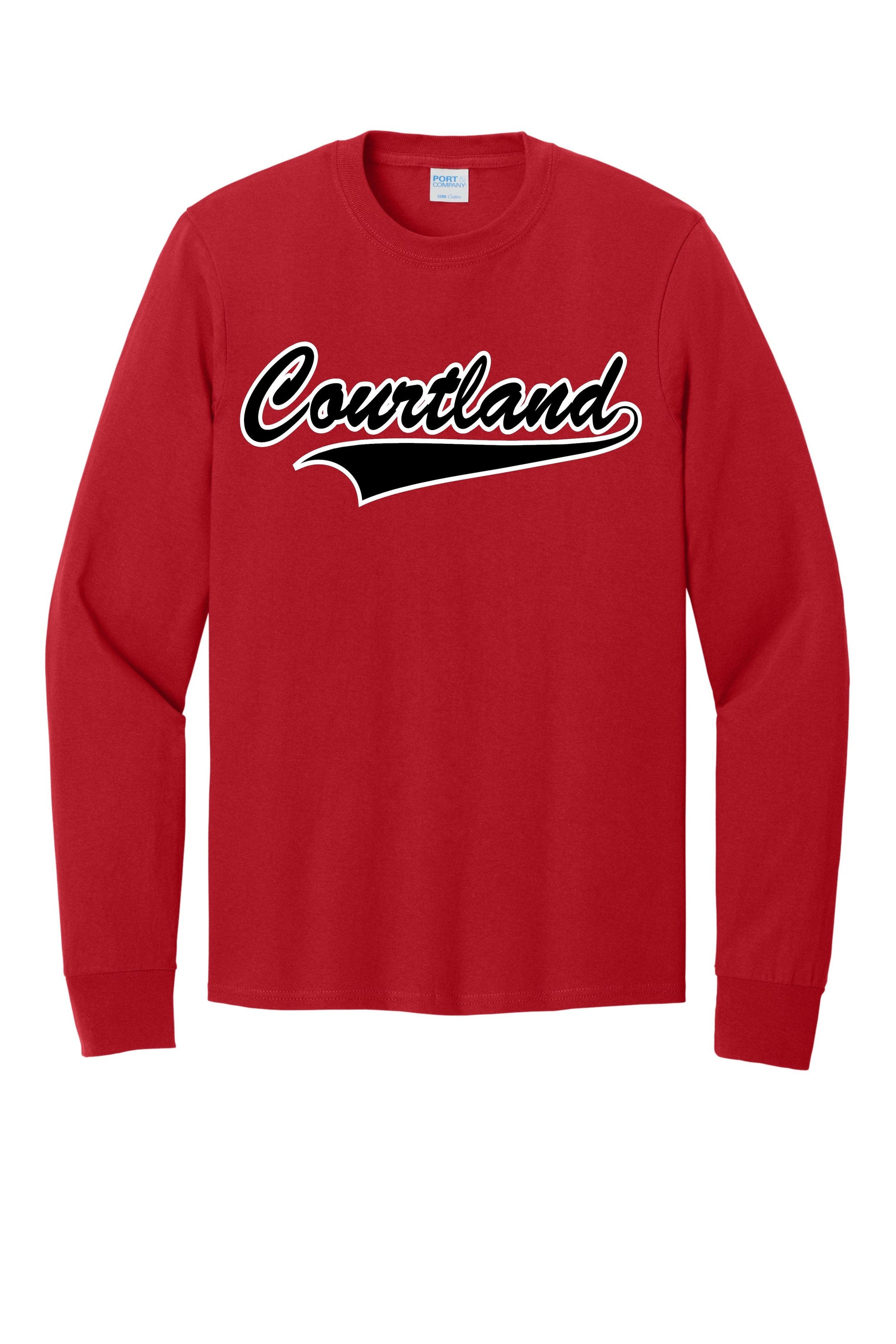 Courtland Baseball Long Sleeve Tee Shirt. Available with or without personalization